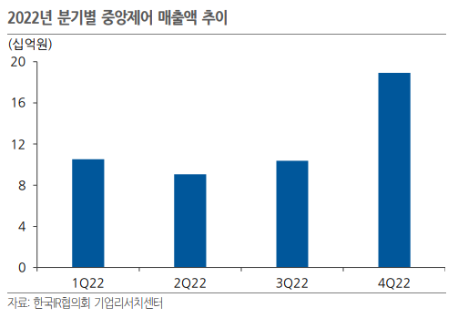 중앙제어는 2022년 5월 조달청 우수제품 지정과 함께 관공서 및 공공기관 수주 증가로 큰 폭의 외형 성장세를 기록했으며, 2023년에도 환경부의 공격적인 전기차 충전 인프라 확대에 따른 수혜가 이어질 것으로 기대된다