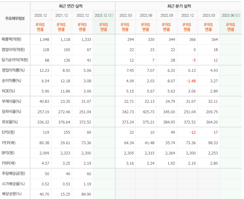 2023 년 매출액 1600 억원, 영업이익 64 억원 전망