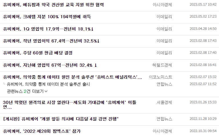 | [기업분석] 유비케어(032620), 디지털 헬스케어 사업 인프라 구축을 위한 투자 지속 (0) | 2023.06.16 |